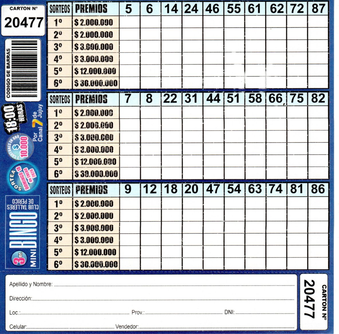 Comprá este cartón del 3er. MINI Bingo del Club Talleres de Perico con los números de tu suerte!!!