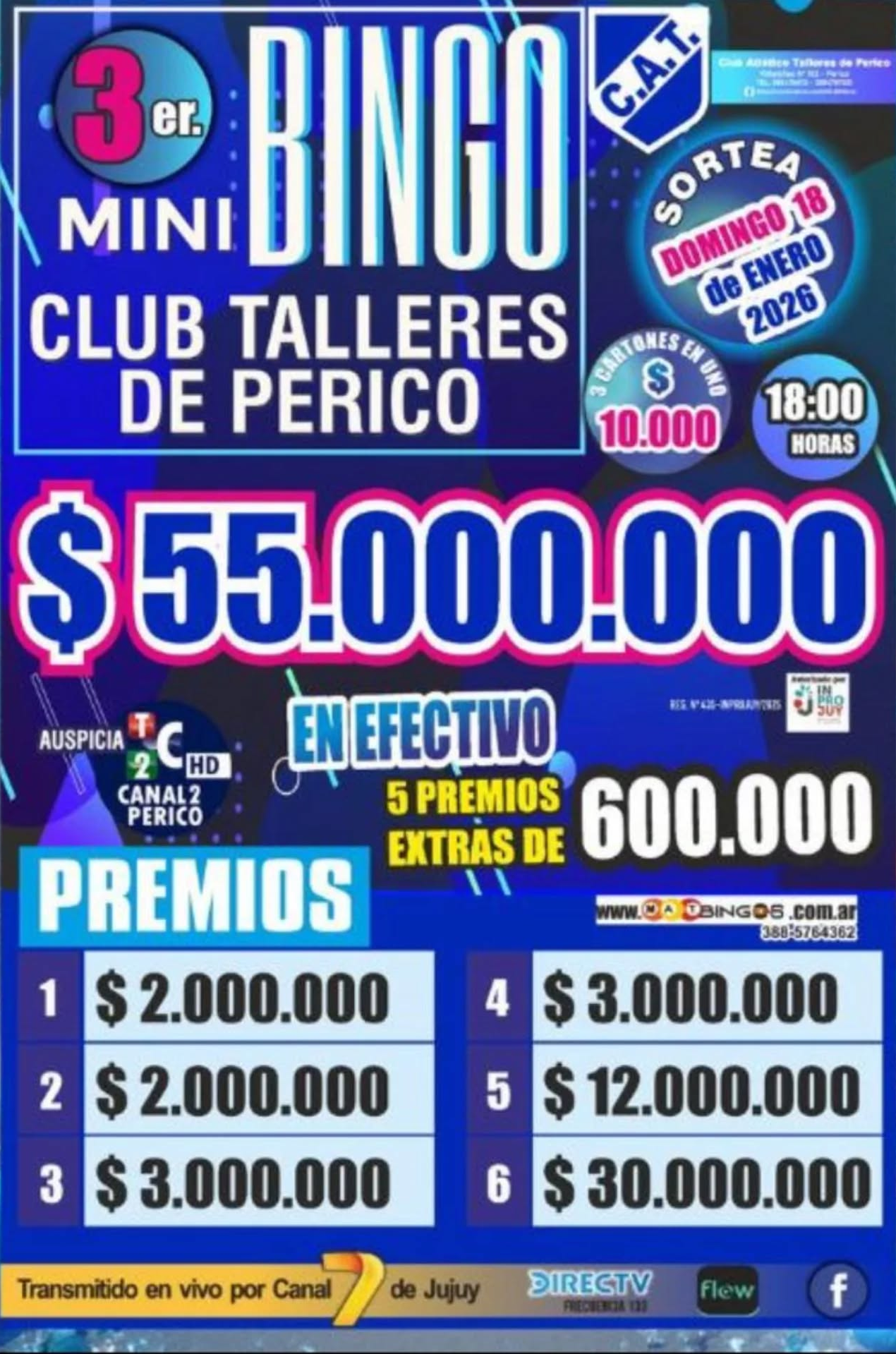 ¡Se viene el TERCER MINI BINGO del Club Talleres de Perico! 🚈🔥🎉