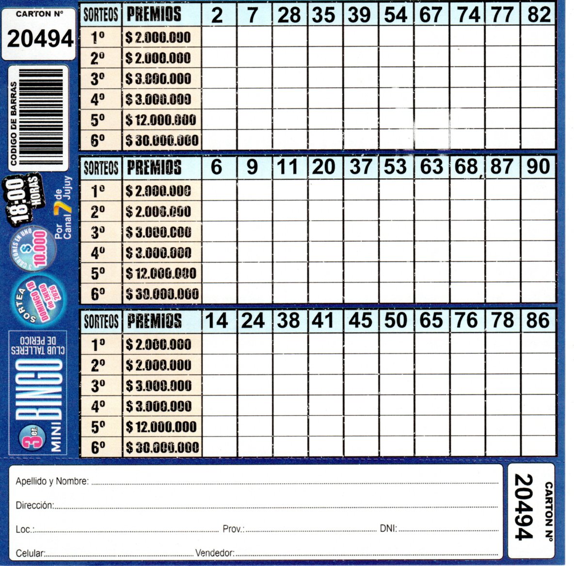 Comprá este cartón del 3er. MINI Bingo del Club Talleres de Perico con los números de tu suerte!!!