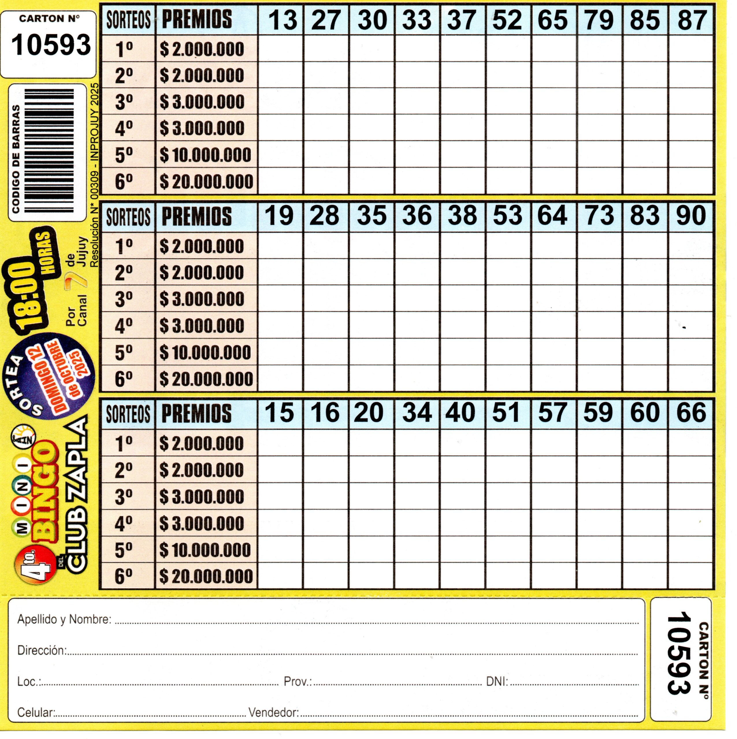 Comprá este cartón del 4to. MINI Bingo del Club Altos Hornos Zapla con los números de tu suerte!!!