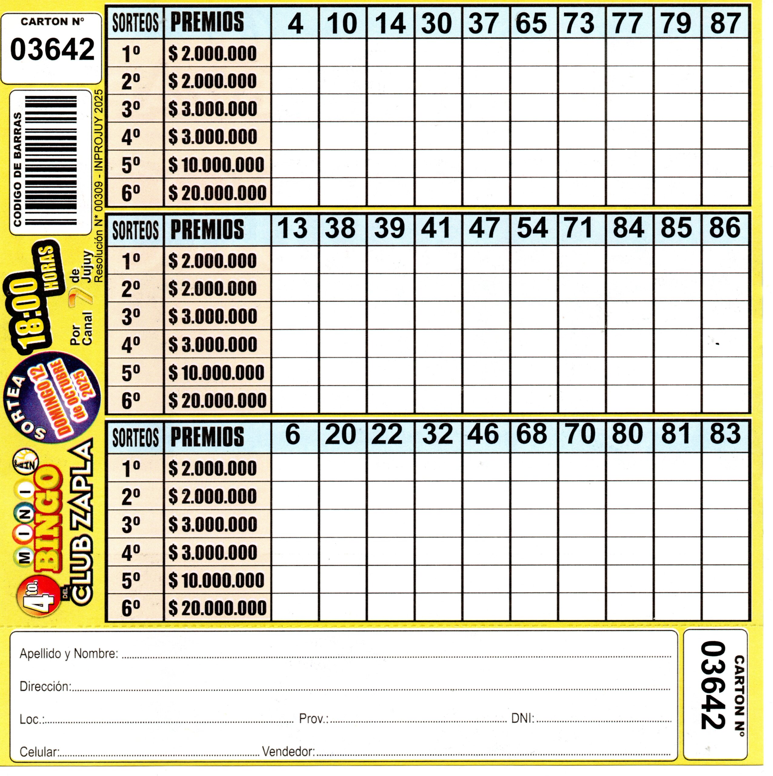 4 MINI Bingo ZAPLA – Cartón 3642