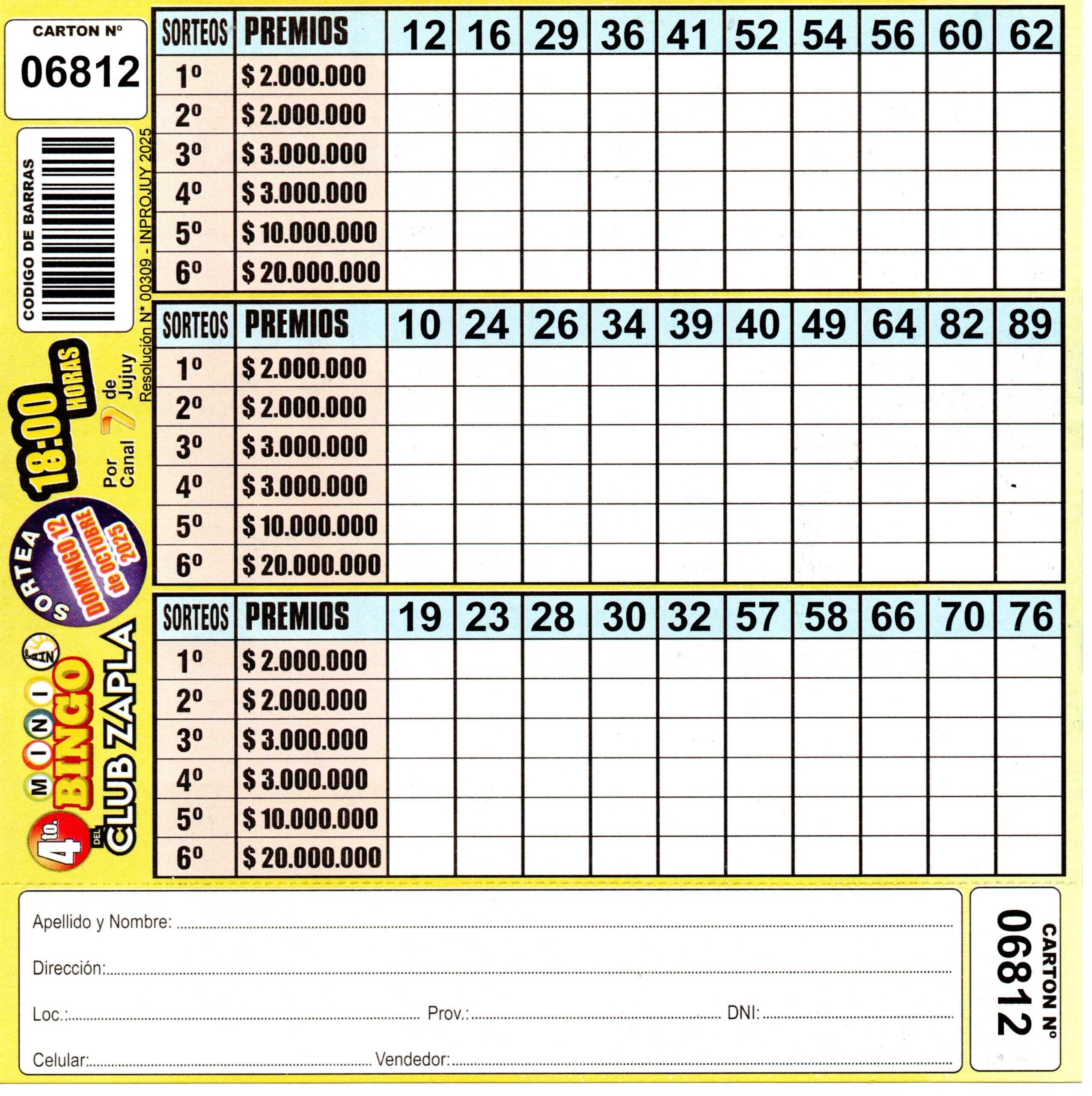 Comprá este cartón del 4to. MINI Bingo del Club Altos Hornos Zapla con los números de tu suerte!!!