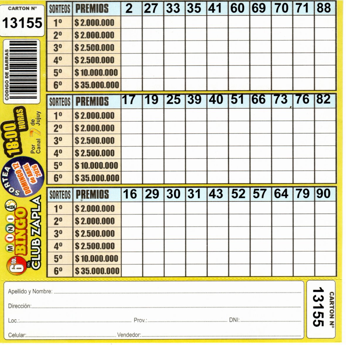 Comprá este cartón del 6to. MINI Bingo del Club Altos Hornos Zapla con los números de tu suerte!!!