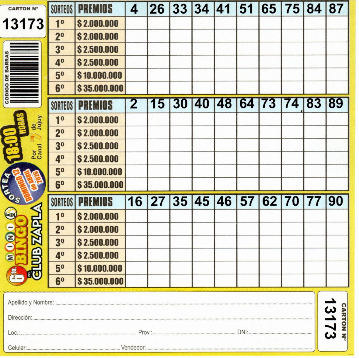 Comprá este cartón del 6to. MINI Bingo del Club Altos Hornos Zapla con los números de tu suerte!!!