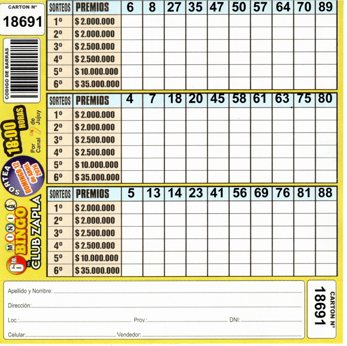 6 MINI Bingo ZAPLA – Cartón 18691